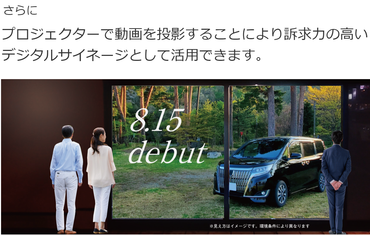 活用場面例/ショーウィンドウ、結婚式場、カーディーラー、スポーツバー、オフィス、イベント会場