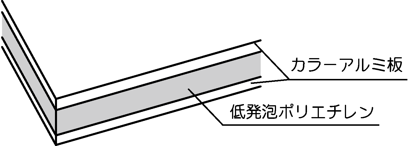 低発砲ポリエチレンシートをカラーアルミでサンドイッチした板です。
